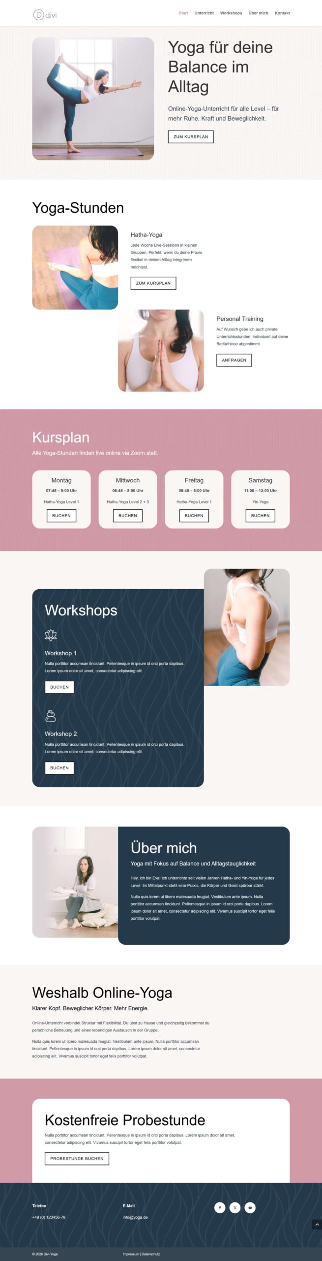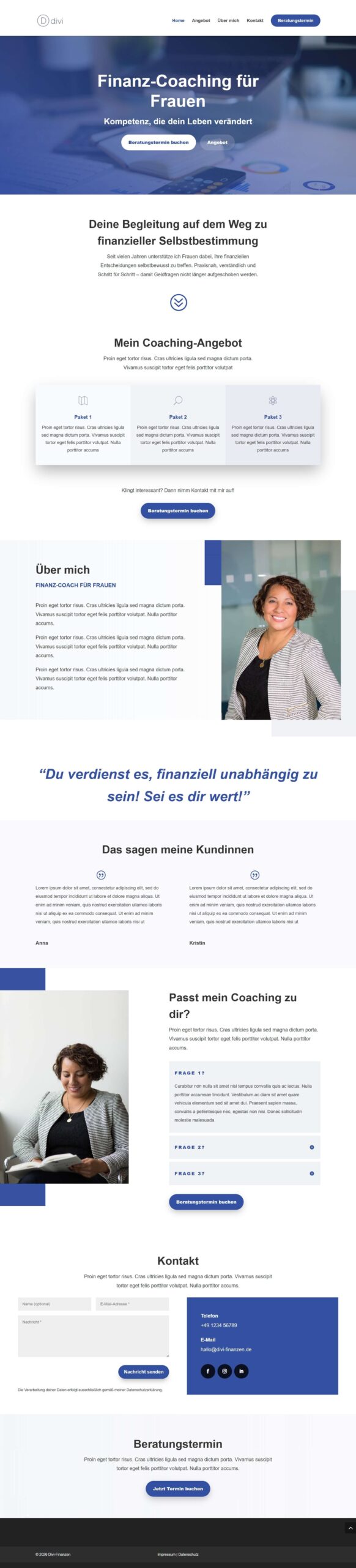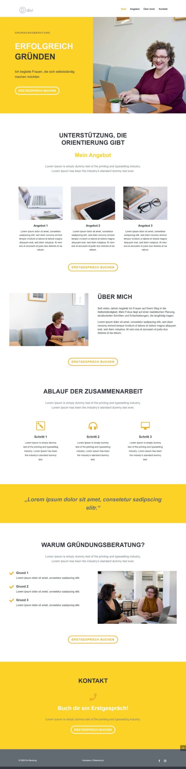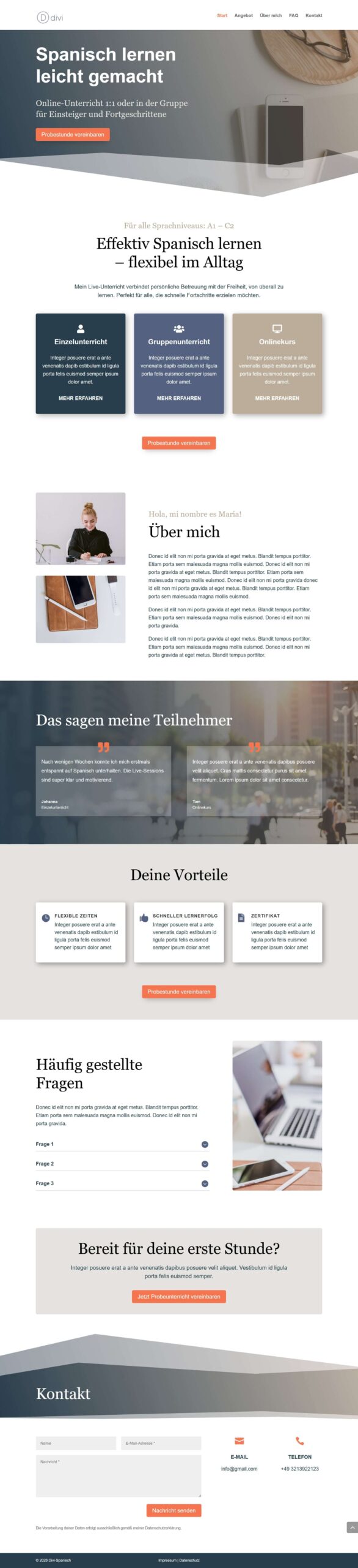 - Erstellung eines Onepagers mit WordPress und dem Divi-Theme innerhalb einer Umsetzungwoche